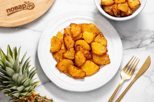 Описание приготовления блюда: Ниже я расскажу подробнее, как приготовить ананас в аэрогриле. Тростниковый сахар можно заменить на обычный белый или сладкий сироп, а сливочное масло растительным с нейтральным вкусом. Подавать