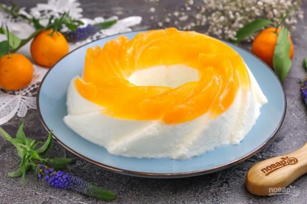 Описание приготовления блюда: Для приготовления десерта можно использовать только мандариновый сок или заменить сметану взбитыми сливками. Обязательно дожидайтесь полного застывания мандаринового слоя, прежде чем заливать сметанный, чтобы они не перемешались.