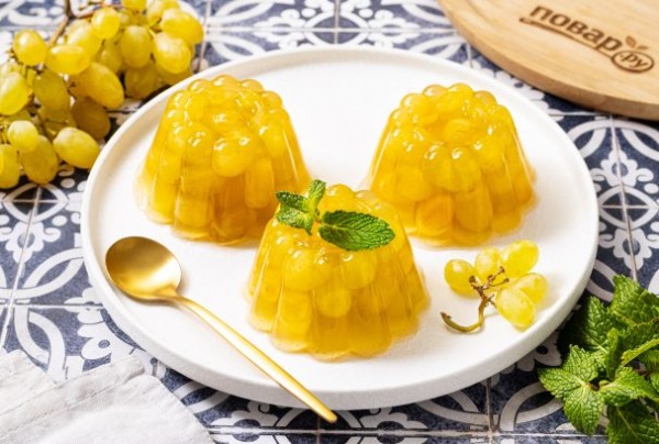 Описание приготовления блюда: Ниже я расскажу подробнее, как приготовить виноград в чайном желе. Подойдет любой зеленый чай, но особенно рекомендую попробовать зеленый чай с жасмином. Виноград тоже можно взять любой,