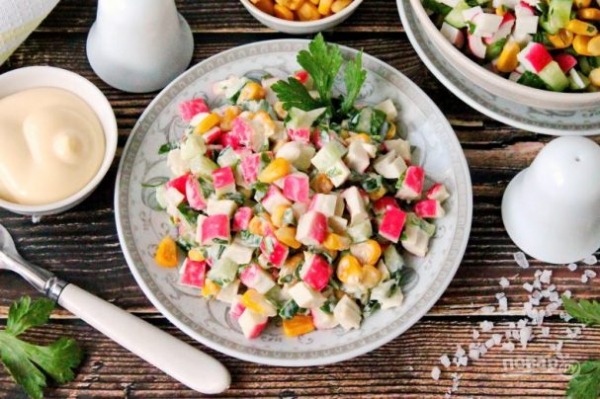 Постный салат с крабовыми палочкамиПостный салат с крабовыми палочками