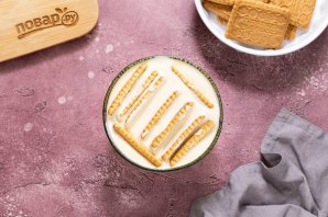 Заполните кременку печеньем как можно плотнее. Оно должно не заваливаться, а стоять ребром.