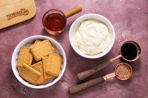 Ниже я расскажу подробнее, как приготовить японский чизкейк из йогурта. Йогурт в идеале использовать греческий, без сахара и лишних добавок. Печенье подойдет любое сахарное и хрустящее, которое быстро размокает. Можно взять, например, печенье по типу юбилейного. По желанию в десерт можно добавить крупно порубленные жареные орехи или шоколад, свежие ягоды или фрукты, а также любые сладкие топпинги. Я предлагаю попробовать самый популярный вариант японского чизкейка с кофе, который по вкусу будет напоминать тирамису. Готовится такой десерт проще простого, но получается очень вкусным!