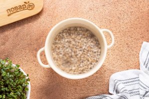 Перловку предварительно замочите в воде на ночь или хотя бы на пару часов.