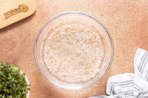 После хорошо промойте крупу несколько раз до прозрачности. Откиньте на сито, дайте стечь лишней жидкости.