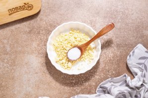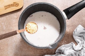 Доведите до кипения. Тонкой струйкой начните вводить кукурузную муку с сахаром, постоянно помешивая напиток венчиком, чтобы не образовывалось комочков.