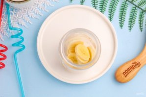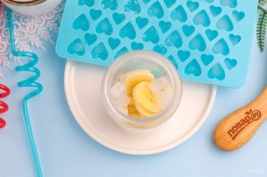 Очистите банан от кожуры и нарежьте его кружочками или кубиками. Всыпьте нарезку в чашу блендера.