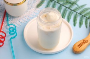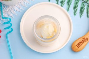 Выложите в емкость шарик сливочного мороженого. Если емкость крупная и готовите вы сразу несколько порций, то увеличивайте объем всех продуктов в несколько раз.