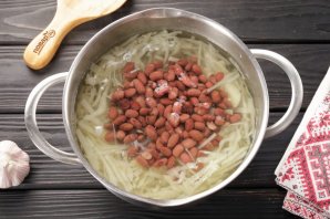 Подготовьте все ингредиенты по списку. Если вы возьмёте консервированную фасоль, то борщ приготовите в считанные минуты. Если же вы используете обычную сухую фасоль, то её следует предварительно замочить, а затем отварить до готовности.