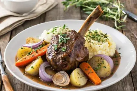 Засунуть палочки от суши (или другие) в запеченное мясо и нарезать на порции.