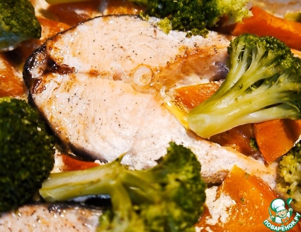 Рецепт «Запечённый стейк трески с морковью»: