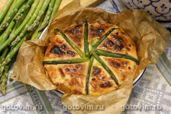 К этому времени овощи уже готовы, добавила их к тесту и смешала. Форму смазала сливочным маслом, вылила в нее тесто с овощами. Поверх поместила кусочки лосося.