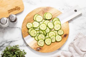 Огурец нарежьте на тонкие кружочки.