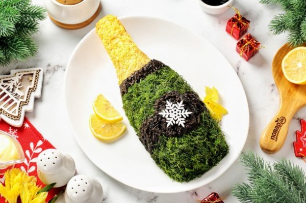 Овощной салат с копченой рыбой готов. Приятного аппетита!