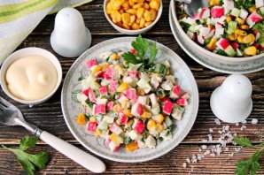 Постный салат с крабовыми палочками готов. Приятного аппетита!
