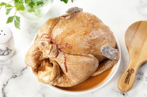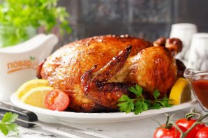 Степень поджаристости цыплёнка можете смело регулировать по своему усмотрению. Для этого можно увеличивать температуру, а так же время приготовления. Обязательно периодически проверяйте процесс, чтобы не допустить подгорания. Проверяйте готовность так: вставьте зубочистку в самую мясистую часть грудки, если выделяющийся оттуда сок прозрачный (а не розоватый), то цыплёнок готов к подаче. Запечённая тушка — это всегда празднично! Такой вариант приготовления подойдёт идеально для всей семьи, ведь сочную нежную грудку без кожи можно предложить даже самым маленьким. Рецепт очень удачный — не оторваться! Рекомендую непременно попробовать и побаловать близких!