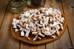 Перед началом приготовления тщательно вымойте шампиньоны и почистите луковицу.