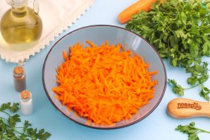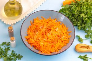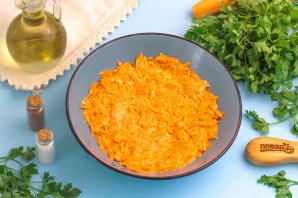Натрите морковь на терке с крупными ячейками в глубокую миску или салатник.
