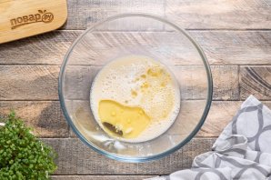 Затем влейте растительное масло и добавьте соль. Еще раз перемешайте.