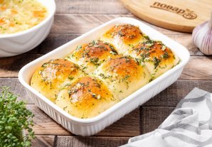 Готовые пампушки, пока они еще горячие, смажьте чесночным соусом.