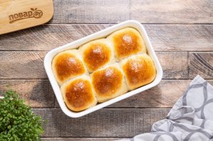 Разделите тесто на равные части, скатайте из них шарики. Переложите в форму для выпечки. Накройте полотенцем и дайте 15-20 минут подняться.